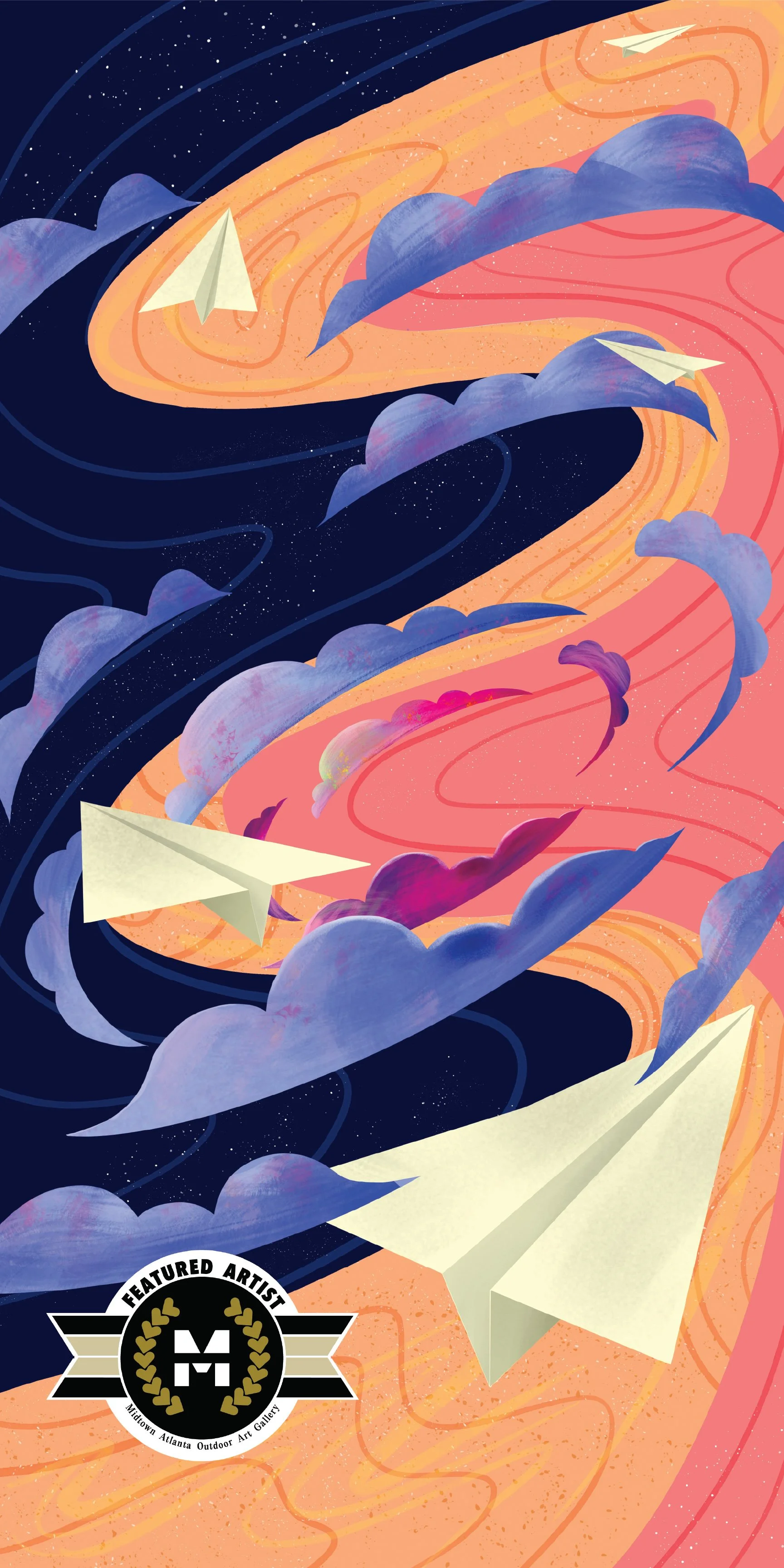 I made this illustration for the Atlanta Midtown Art Alliance. It depicts the idea of growth and aspiration, using paper planes as a metaphor for fragility.